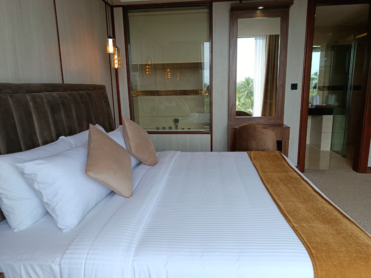Enjoy the comfort of a plush double bed, premium linens, and soft lighting that set the tone for a peaceful night’s sleep. The room features a well-appointed private bathroom with refined fittings and soothing finishes, ensuring every moment feels effortless and rejuvenating.