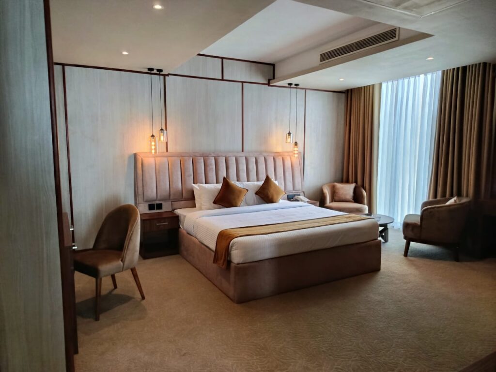 Enjoy the comfort of a plush double bed, premium linens, and soft lighting that set the tone for a peaceful night’s sleep. The room features a well-appointed private bathroom with refined fittings and soothing finishes, ensuring every moment feels effortless and rejuvenating.